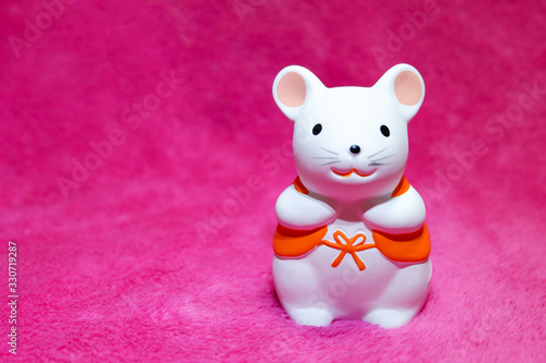 Obraz premium ねずみ, 年賀状, 干支, 正月, 正月飾り, 年賀, 干支置物, 年賀状素材, 正月素材, 背景ピンク, フェイクファー, マウス, 雑貨, 小物, もこもこ, 毛布, コピースペース, ファー, コピーエリア, テキストスペース, テキストエリア, 文字エリア, 背景, 素材, 壁紙, 2020年1月, 1月, 1月1日, 正月休み, かわいい, 横位置, 横, 和風, ピンク