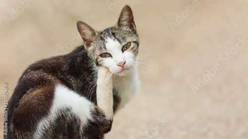 Obraz premium 毛づくろいする野良猫