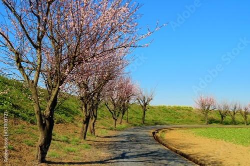 Obraz premium 春 梅 青空 渡良瀬 道 風景 栃木県