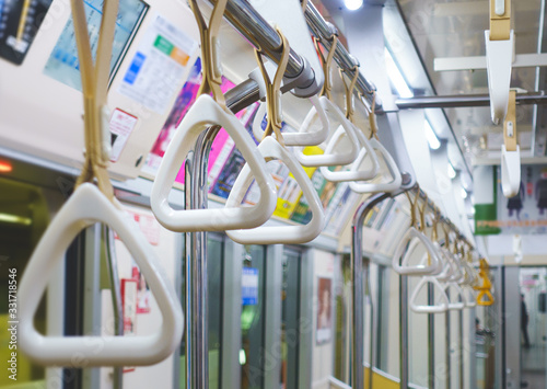 Fototapeta premium 電車の吊り革 / 感染症のイメージ