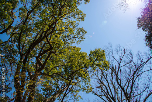 Obraz premium 初夏の陽気 緑色の紅葉 日差しを浴びる