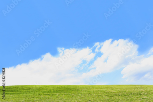 Fototapeta premium 雲と青空を背景にした緑の丘。背景用素材