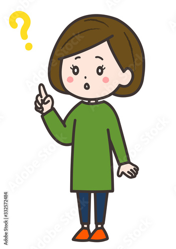 © tokumiyanuts, Obraz premium 疑問点を見つけた女性 ポーズ イラスト