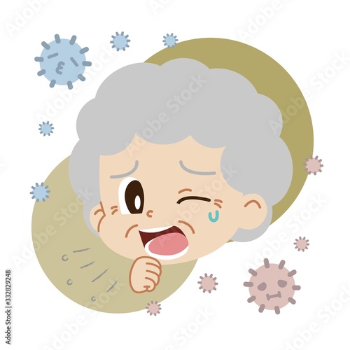 Obraz premium 咳をする高齢女性とハウスダストのイラスト