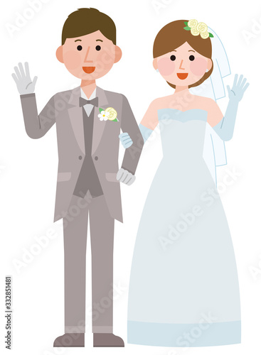 Fototapeta premium 結婚式 披露宴 手を振る新郎新婦 イラスト