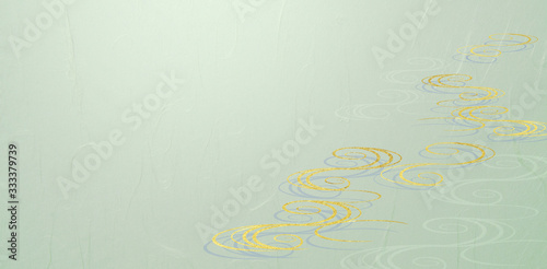 © imagefuji, Obraz premium 波紋のパーターンとグリーンの和紙の背景素材