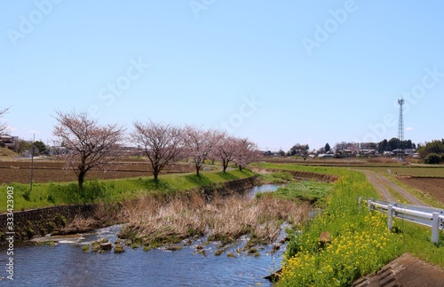 Obraz premium 春 さくら 川 菜の花 風景 茨城