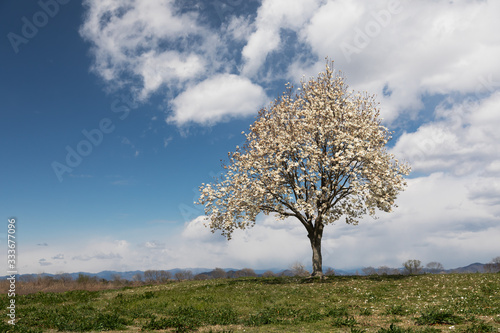 Obraz premium 白い花に咲いた一本の木