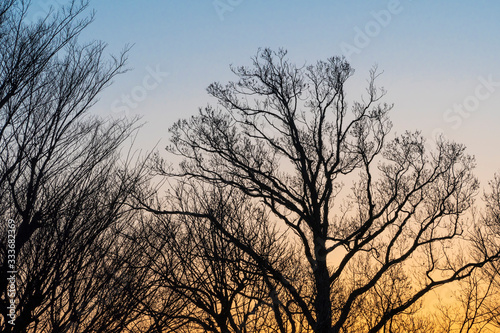 © 憲次郎 三木, Obraz premium 日の出前の木々のシルエット