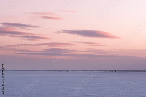 Obraz premium 北海道別海町 冬の野付半島の夕景