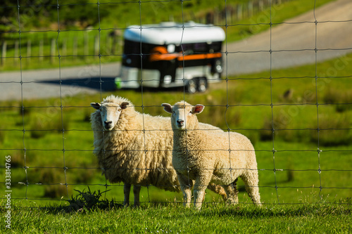 © pespiero, Obraz premium ニュージーランド ウェリントン近郊のマカラの牧場の羊