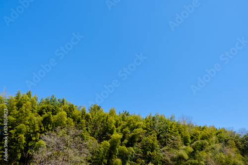 Obraz premium 【写真素材】 青空 山 森林 田舎 春の空 背景 背景素材 3月 コピースペース