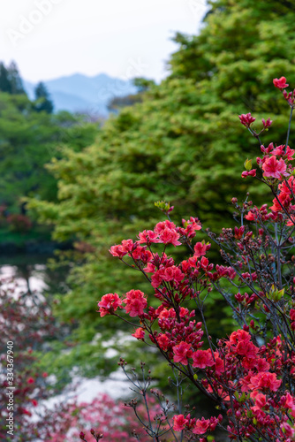 Fototapeta premium 山奥で真っ赤に咲いているツツジ