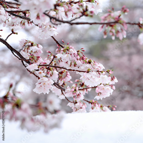 Obraz premium さくら花 つもった雪