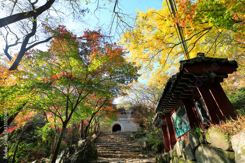 Fototapeta premium 아름다운 가을 단풍과 한국의 전통 건축물