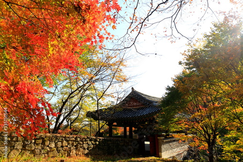 Fototapeta premium 아름다운 가을 단풍과 한국의 전통 건축물