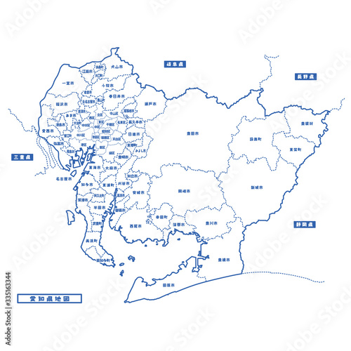 Obraz premium 愛知県地図 シンプル白地図 市区町村