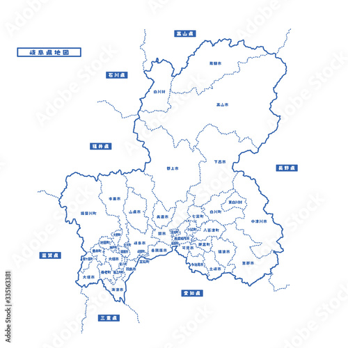 Fototapeta premium 岐阜県地図 シンプル白地図 市区町村