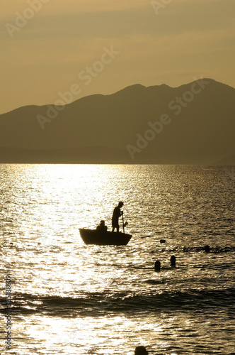 © gohdafunk, Naklejka premium ベトナム ホイアンの海 釣りをする人