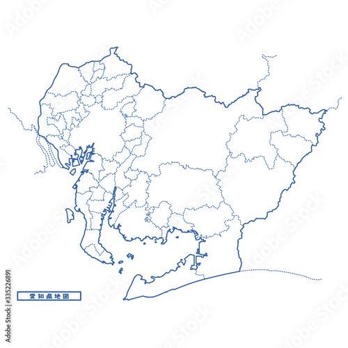 Obraz premium 愛知県地図 シンプル白地図 市区町村