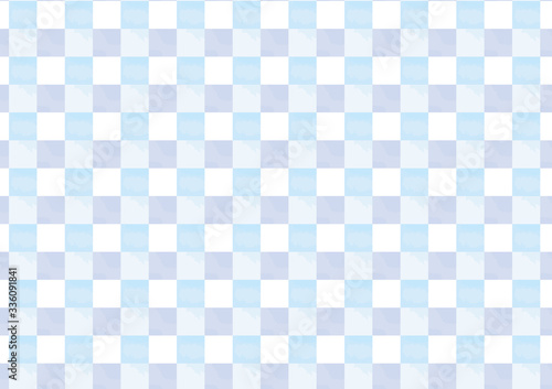 Fototapeta premium 水彩 四角 市松模様 背景 ブルー