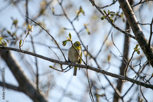 Naklejka premium 公園で遊ぶメジロ