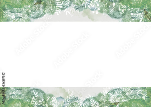 Obraz premium カラフルな水彩の背景素材 雲模様 空模様 花柄 緑色 植物柄
