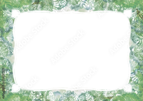 Fototapeta premium カラフルな水彩の背景素材 雲模様 空模様 花柄 緑色 植物柄