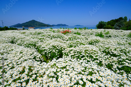 Obraz premium 香川県三豊市のフラワーパーク浦島 一面のマーガレット