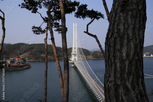 © 재봉 황, Obraz premium 흰색 교량과 호수가 보이는 아름다운 풍경