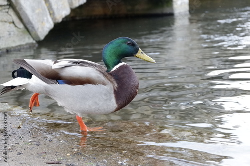 Obraz premium 鳥インフルエンザは怖いけど、日々の生活できれいな鴨を見れる喜び。