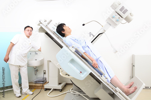 © paylessimages, Obraz premium レントゲンをとる患者とサポートする技師