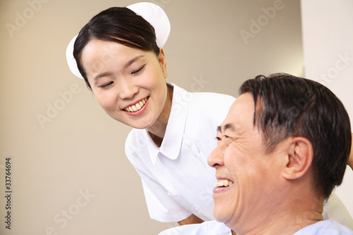 © paylessimages, Obraz premium 会話する看護師と男性患者