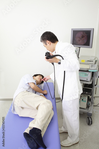 Obraz premium 内視鏡を患者の鼻から差し込む医者