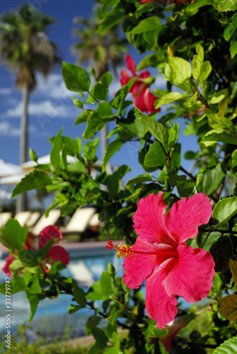 © paylessimages, Obraz premium プールサイドのハイビスカス