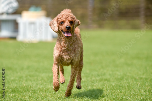 Fototapeta premium ドッグランで遊ぶトイプードル