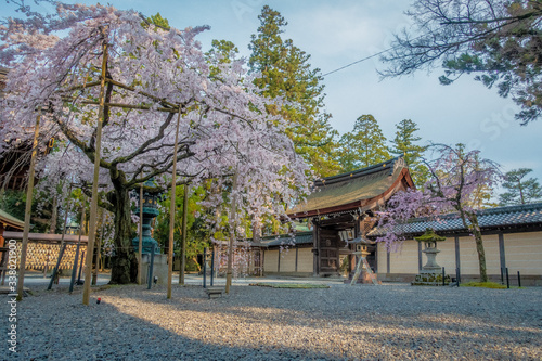 © 眞, Fototapeta premium 桜咲く多賀大社の境内と神門が見える風景です