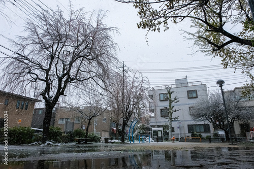 Obraz premium 雪の日の公園 埼玉県蕨市 三和稲荷公園
