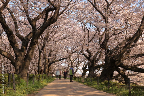 © Makoto-san, Obraz premium 埼玉県 幸手市 権現堂桜堤の満開の桜トンネル