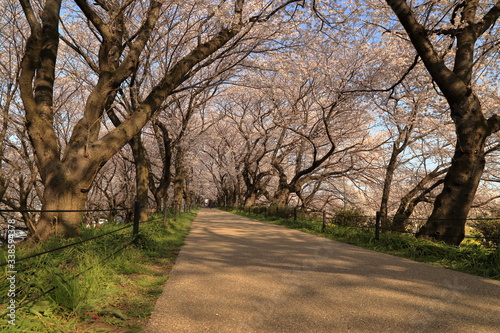 Obraz premium 埼玉県 幸手市 権現堂桜堤の満開の桜トンネル