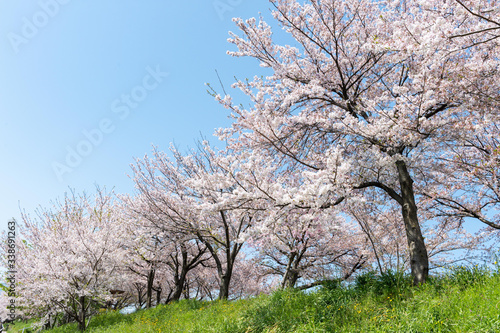 Fototapeta premium 青空の桜並木(岐阜県・大垣市)