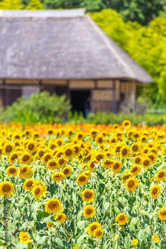 © Daigo Hoya* / 保谷提吾, Obraz premium ひまわり畑と古民家