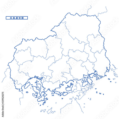Obraz premium 広島県地図 シンプル白地図 市区町村