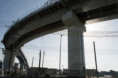 Fototapeta premium カーブしている高架橋を下から見上げる