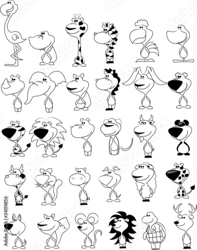 © virinaflora, Naklejka premium векторный набор различных милых животных, черно-белой окраской