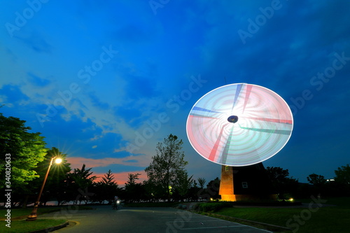 © 재봉 황, Obraz premium 조명이 빛나는 풍차
