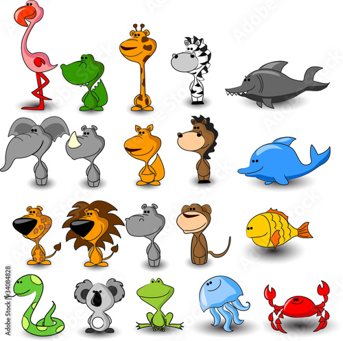 © virinaflora, Naklejka premium Большой набор векторных различных милых животных