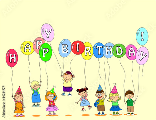 © virinaflora, Obraz premium детей держать воздушные шары, открытки, вектор