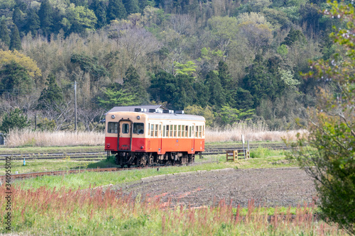 Obraz premium 上総鶴舞駅付近の小湊鐵道 千葉県市原市 日本