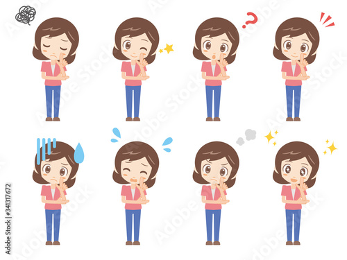 © patamco, Obraz premium 人物セット_顔に手を当てる_女性_ピンク